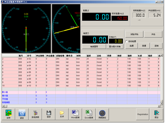 記錄沖擊強度,沖擊能量等.也可計算最大最小平均值和標準偏差。